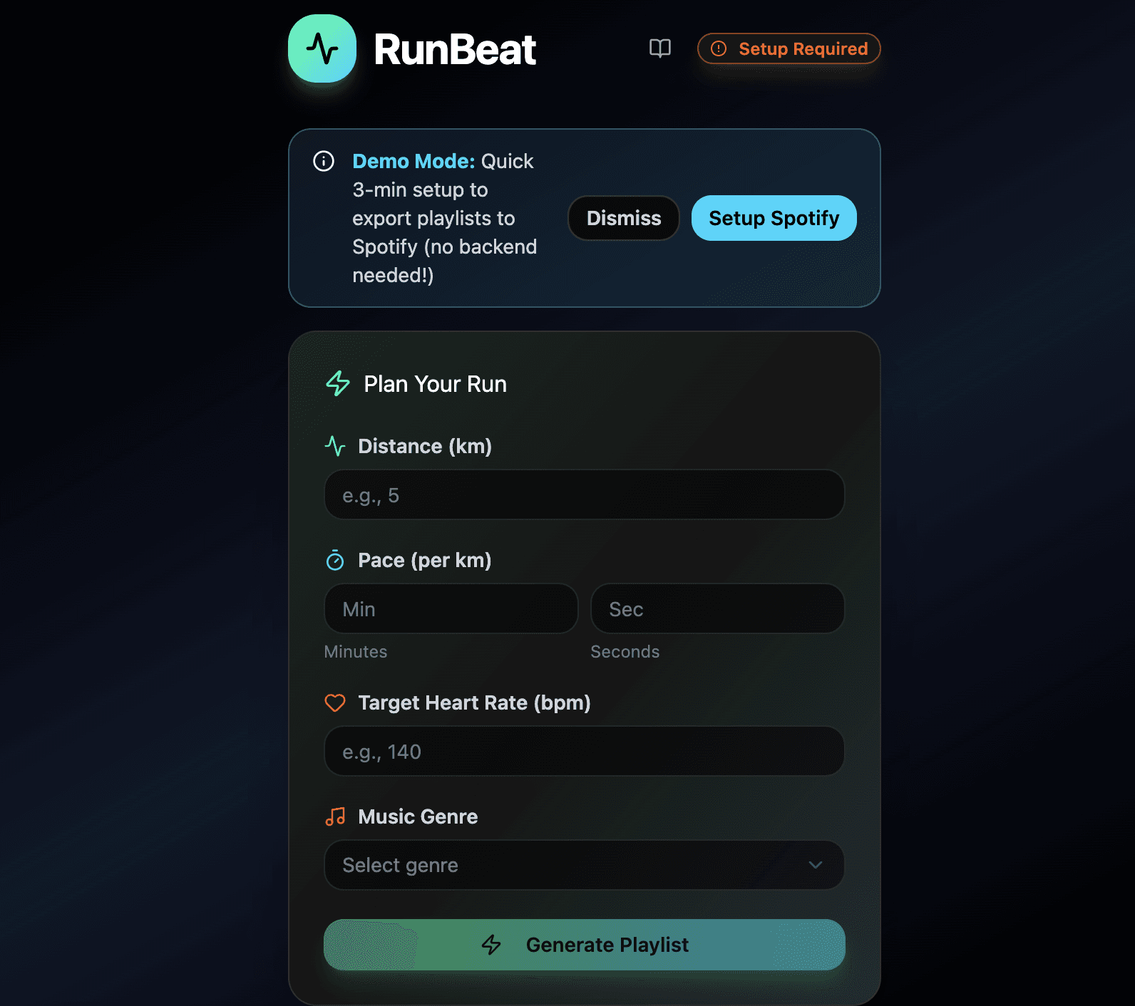 An app that generates a Spotify playlist based on my planned pace, distance, and heart rate 🎵🏃♀️. Also regenerate the playlist anytime, and of course, export it directly to Spotify. Made it with Figma Make and integrated with Supabase and Spotify for Developers.